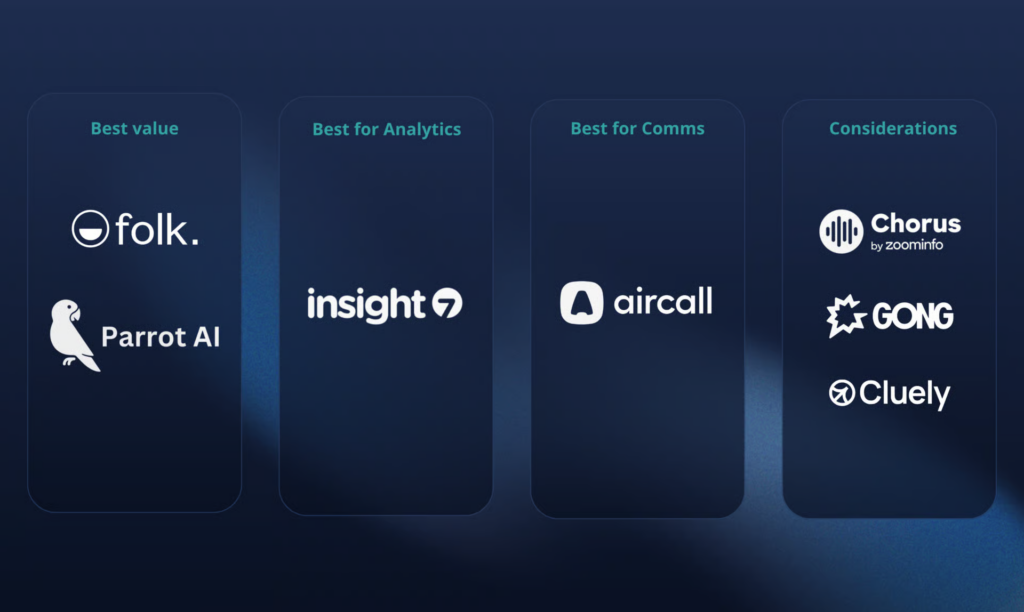 Considerations: Cluely (AI assistant for meeting), Gong (AI revenue platform), and Chorus (AI conversation platform) offer advanced features like real-time advice, but may be complex and costly for smaller teams.